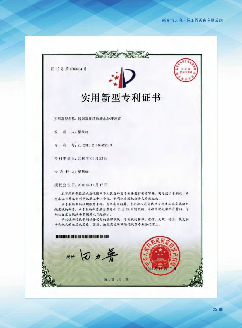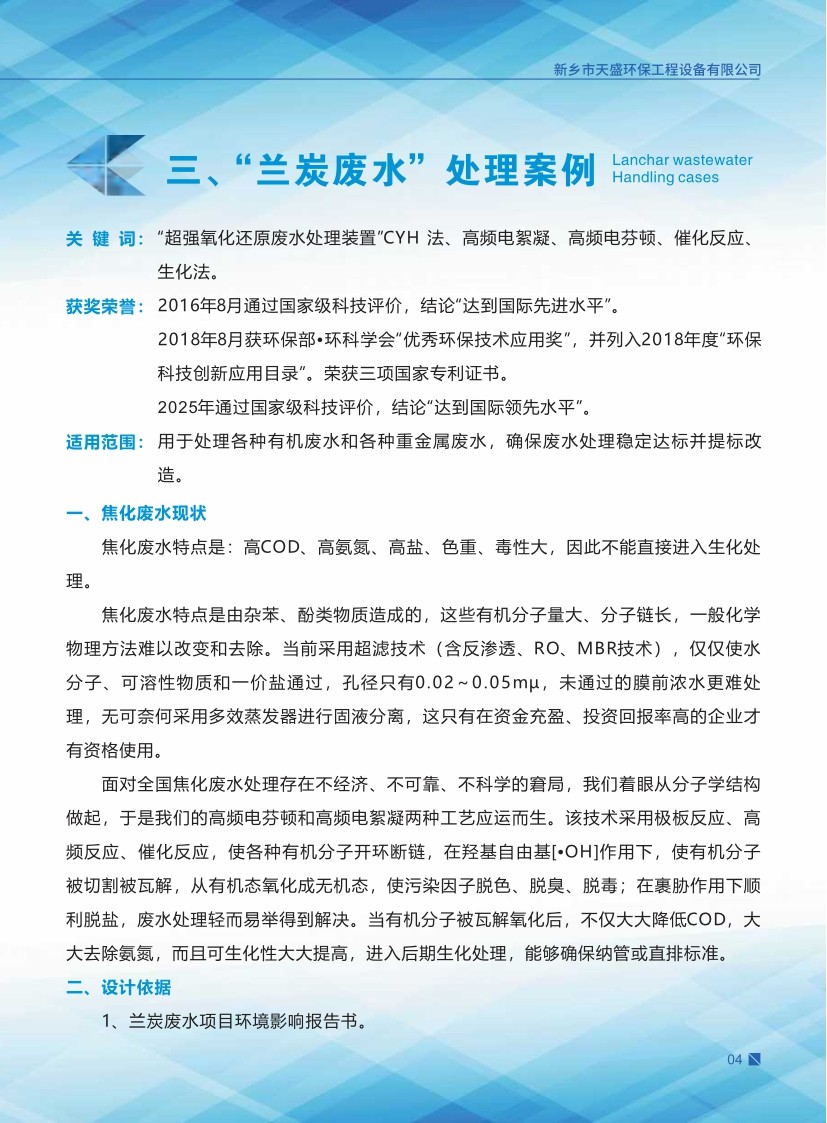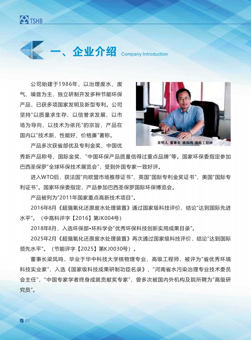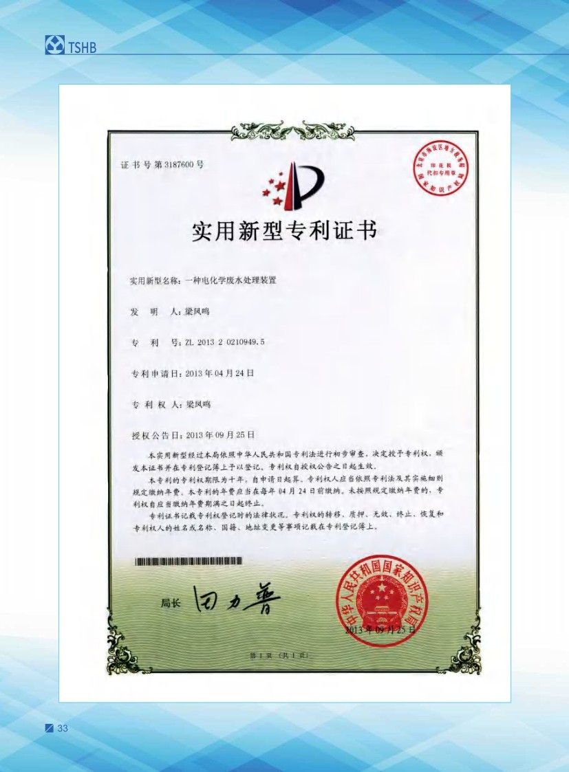 公司始建于1986年,以處理各種有機(jī)廢水、各種重金屬?gòu)U水為主,獨(dú)立研制開(kāi)發(fā)多種節(jié)能環(huán)保產(chǎn)品,已獲多項(xiàng)國(guó)家發(fā)明及新型專利一種電化學(xué)廢水處理裝置 ZL 2013 2 0210949.5。公司堅(jiān)持“以質(zhì)量求生存、以信譽(yù)求發(fā)展、以市場(chǎng)為導(dǎo)向、以技術(shù)為依托”的宗旨。