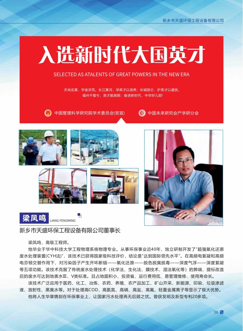 董事長(zhǎng)梁鳳鳴,畢業(yè)于華中科技大學(xué)核物理專業(yè),高級(jí)工程師,被評(píng)為“省優(yōu)秀環(huán)境科技實(shí)業(yè)家”,入選《國(guó)家級(jí)科技成果研制功臣名錄》,多次被國(guó)內(nèi)外機(jī)構(gòu)及院所聘為“高級(jí)研究員”。醫(yī)藥廢水處理現(xiàn)場(chǎng):三種反應(yīng)、五項(xiàng)功能、四種效果解決了廢水處理的難題!