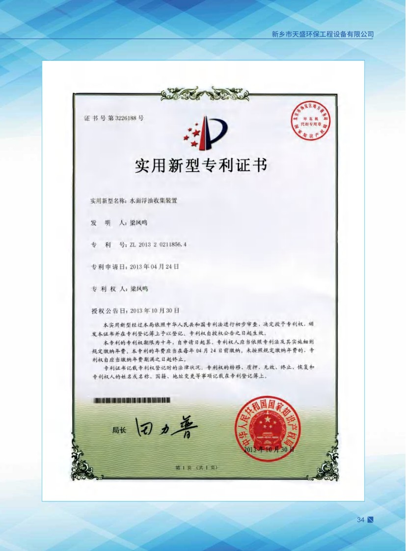 以治理廢水為主,獨(dú)立研制開(kāi)發(fā)多種節(jié)能環(huán)保產(chǎn)品,已獲多項(xiàng)國(guó)家發(fā)明及新型專利水面浮油收集裝置 ZL 2013 2 0211856.4。公司堅(jiān)持“以質(zhì)量求生存、以信譽(yù)求發(fā)展、以市場(chǎng)為導(dǎo)向、以技術(shù)為依托”的宗旨,產(chǎn)品在國(guó)內(nèi)以“技術(shù)新、性能好、價(jià)格廉”著稱。